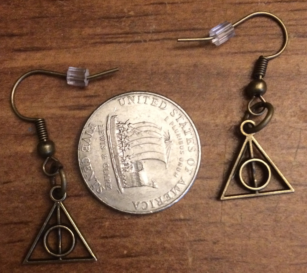 Harry Potter Deathly Hallows Earrings on pewter fishhooks