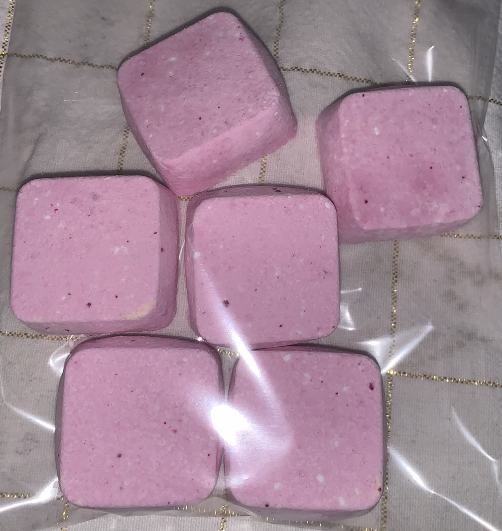 Ingredients: Sodium Bicarbonate/Corn Starch blend, Citric Acid, Water, Jojoba Oil, Macintosh Apple Scent, Purple Dye, Pink Dye