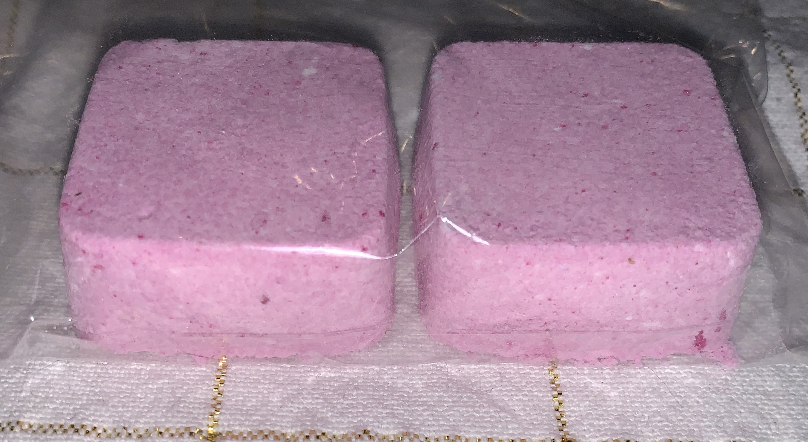 Honeysuckle scented pink square bath bombs