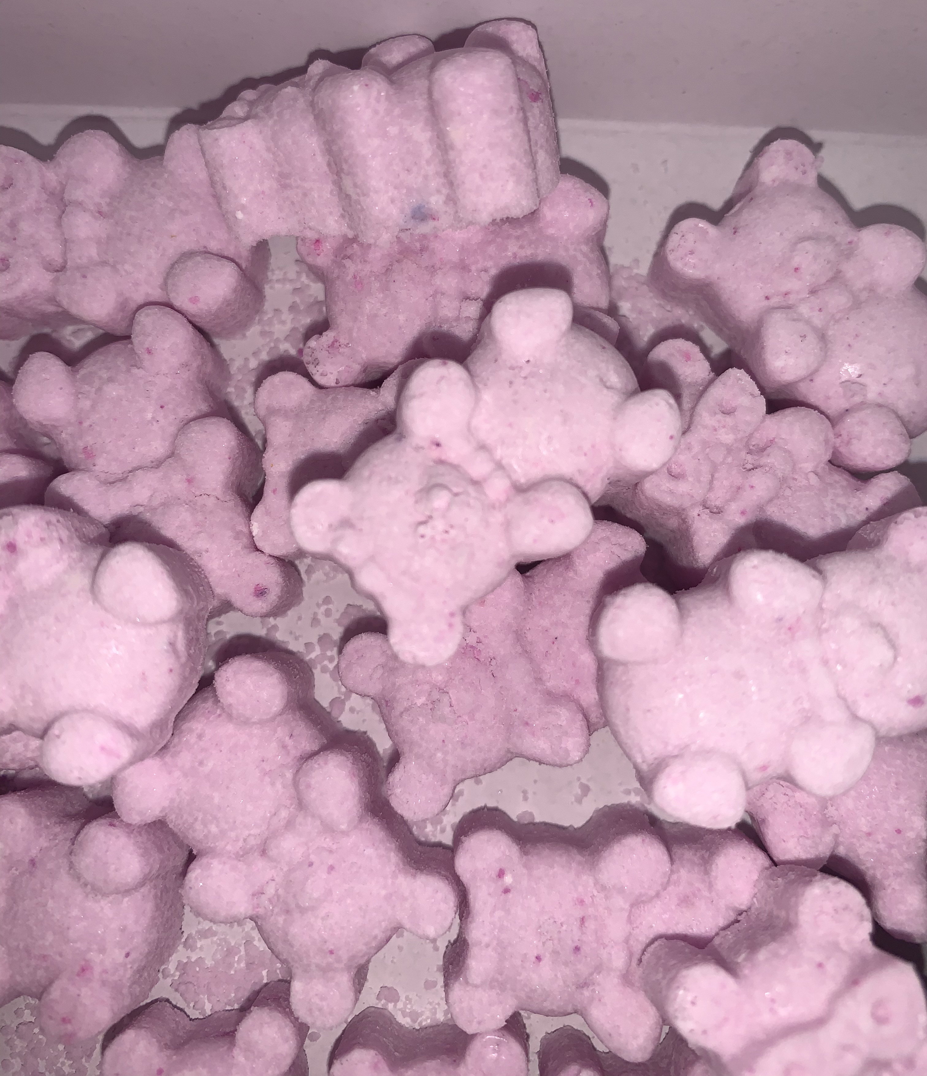 Buttercream scented lilac gummy bear bath bombs